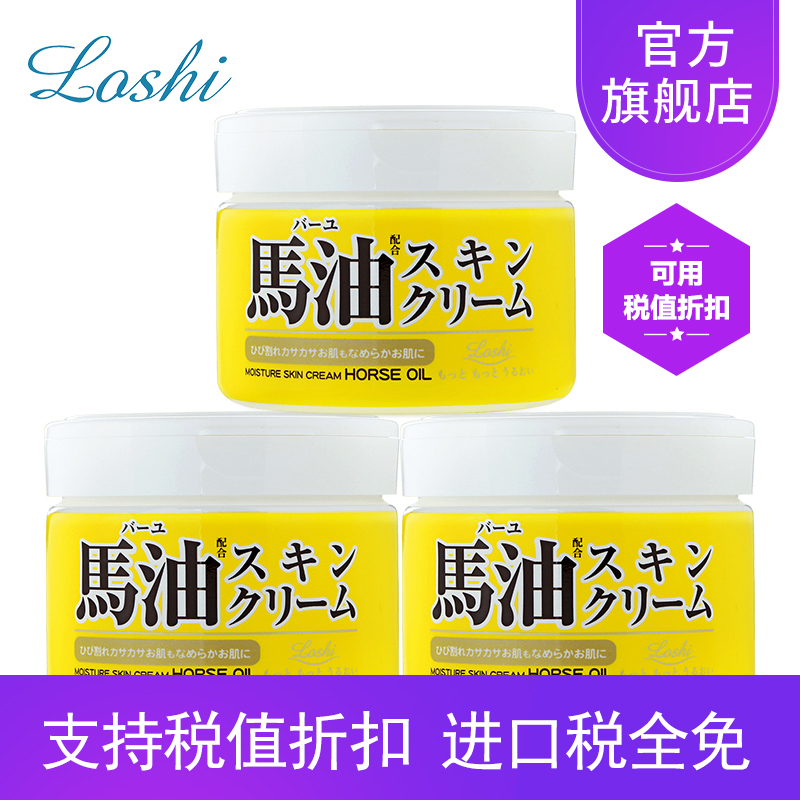 的热门产品日本进口Loshi北海道马油面霜乳霜 全能补水保湿滋润抗敏止痒 3盒