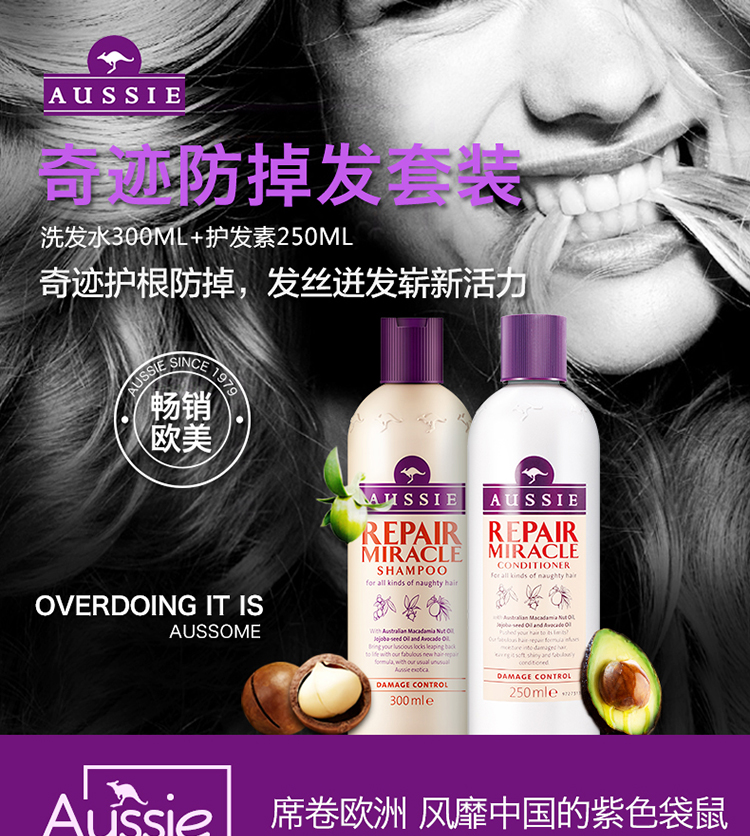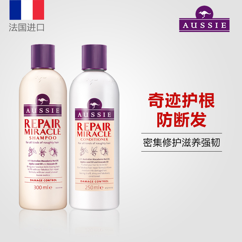 Aussie袋鼠奇迹防掉发洗发水300ml+护发素250ml法国进口正品.