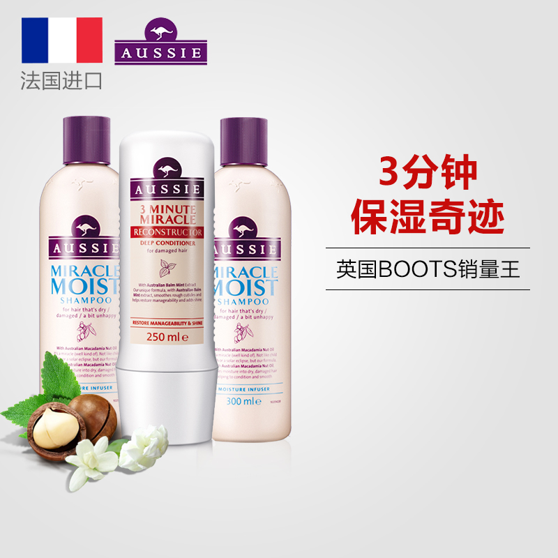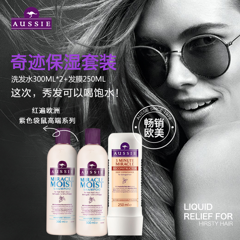 法国进口aussie奇迹水润洗发水300ml*2+护发素250ml 欧洲热卖正品
