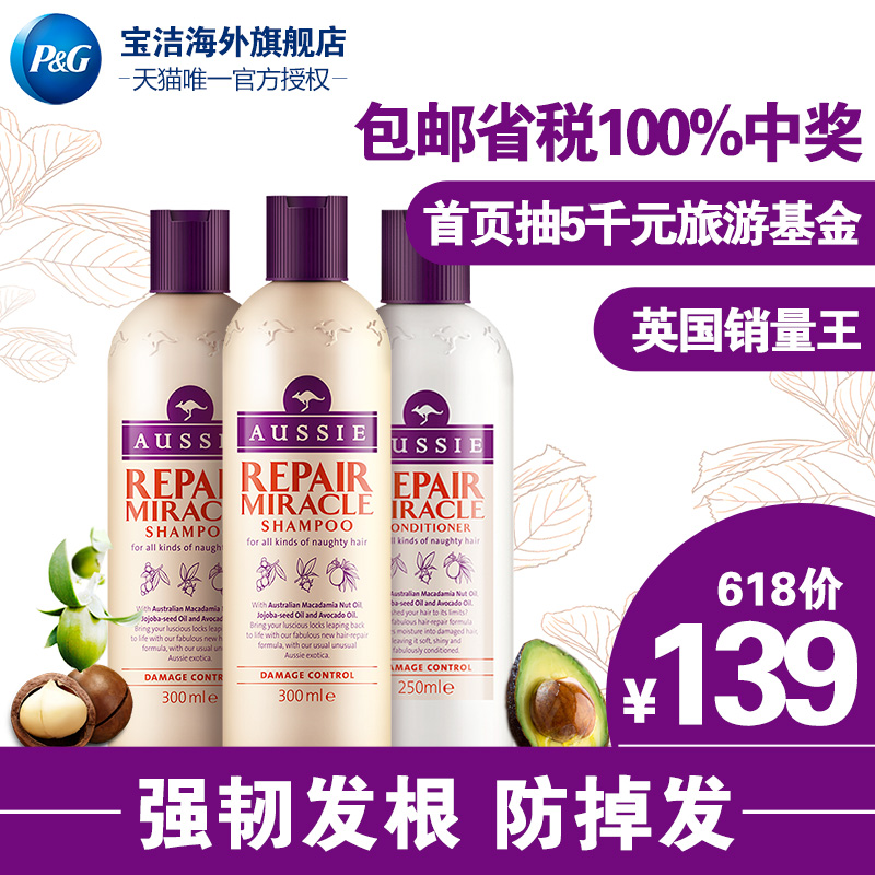 的热门产品法国袋鼠Aussie修护防断发洗发水300ml*2+护发素250ml原装进口