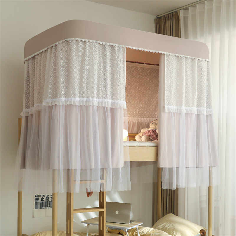 浪漫香槟公主风U型双轨道导轨蚊帐 学生宿舍遮光床帘一体寝室少女