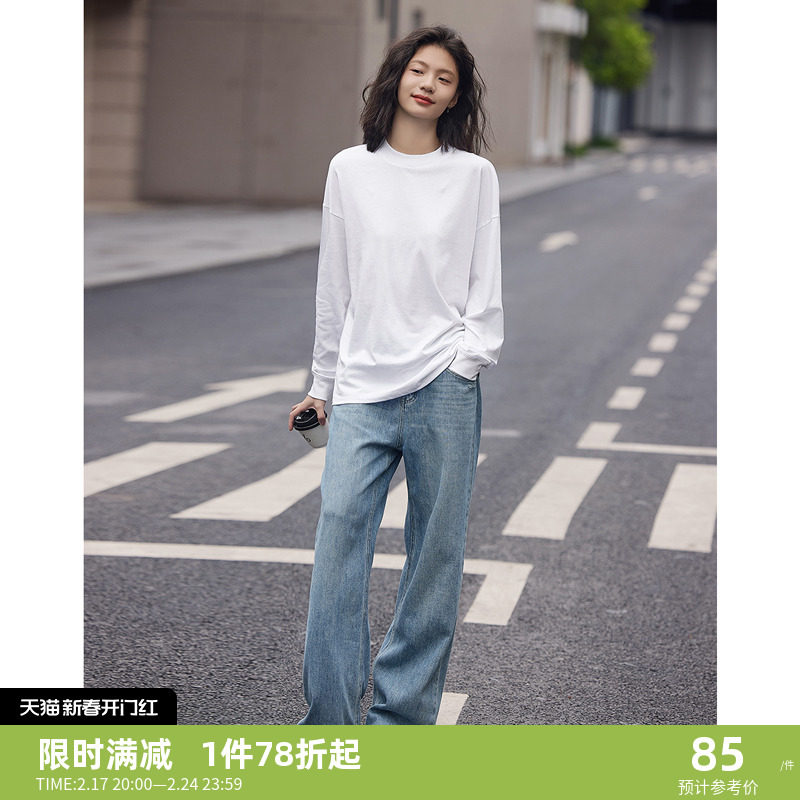【经典简约白T 】2024德玛纳春新款休闲舒适分割线纯色长袖T恤女