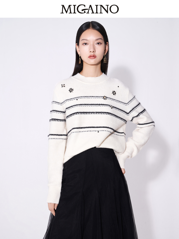 曼娅奴套头毛衣女2023秋冬新款温柔气质羊毛针织衫上衣MM42WH227
