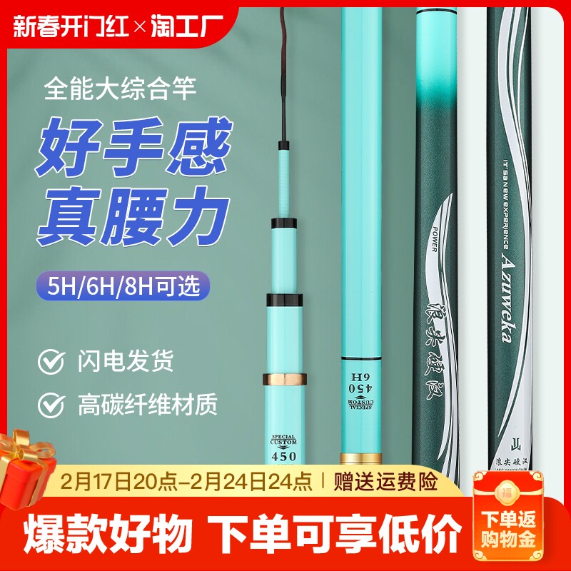 正品浪尖硬汉鱼竿手竿碳素超轻超硬28调台钓竿19调大物竿渔具套装
