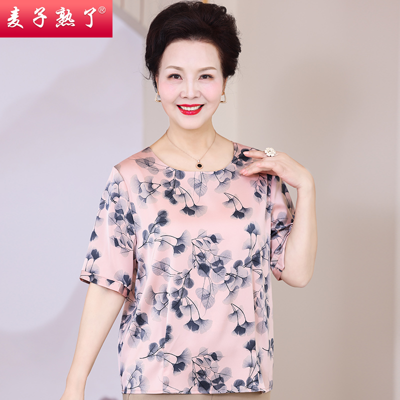 中老年女装短袖T恤上衣小衫夏装中年妈妈装宽松大码奶奶两件套装