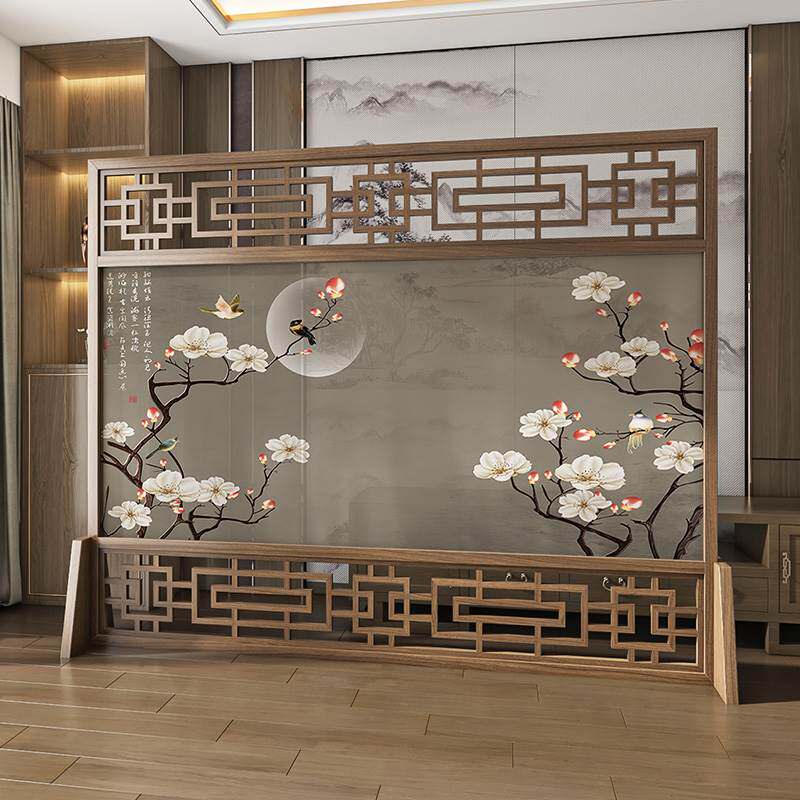 施麦尔手绘实木入户高端屏风隔断客厅可移动书房茶室家用装饰座屏