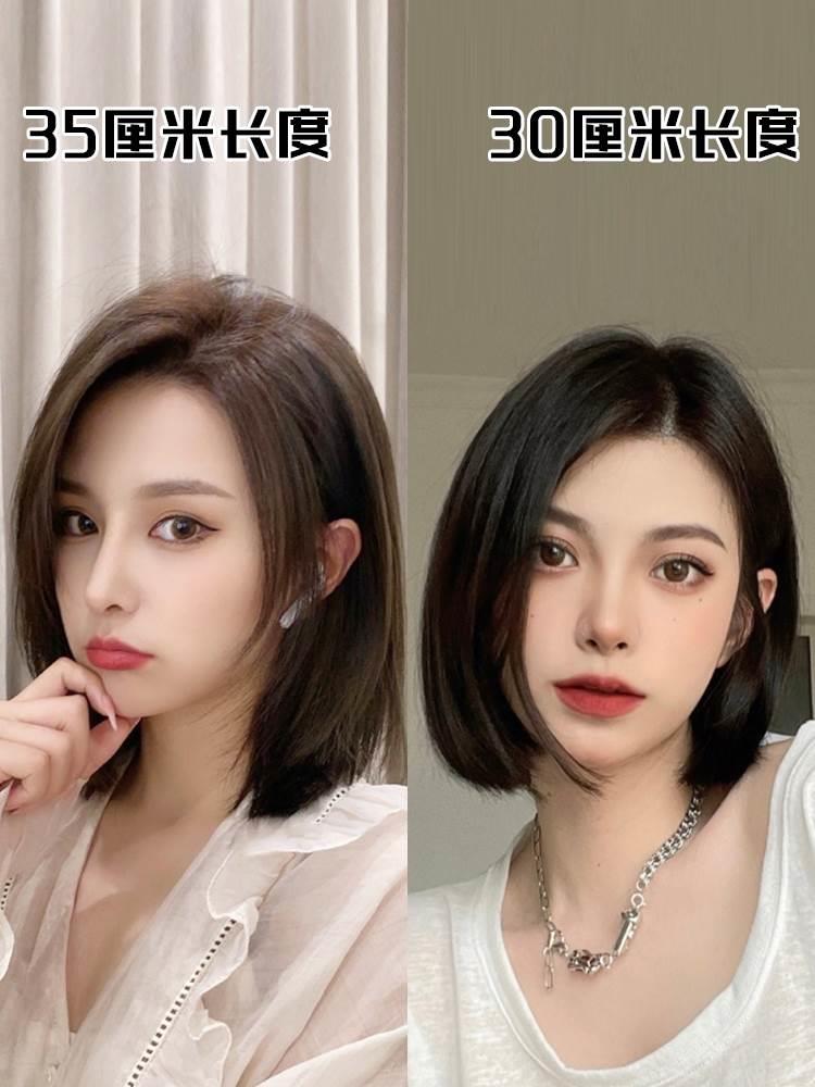 l黛美假发女短丝发短海直发眉刘手织真发发上套女短发梨花头假发