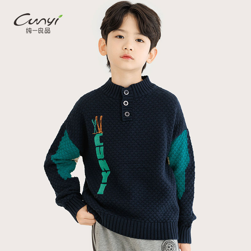 纯一良品童装男童毛衣2023秋冬新品中大童半高领半开襟软糯长袖潮
