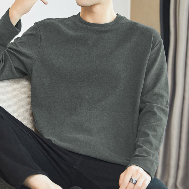 双面德绒打底衫男士长袖t恤圆领秋冬季保暖加绒加厚内搭纯色秋衣