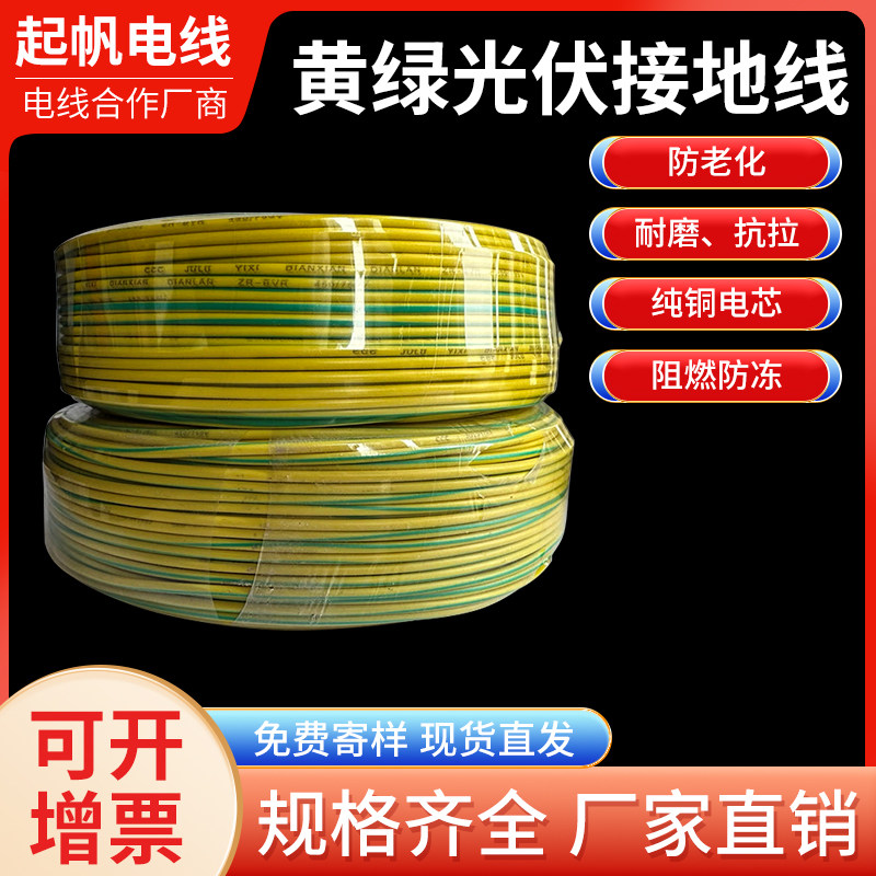 起帆 黄绿双色接地线 RV/BVR 1.5/2.5/4/6/10/16平方 静电线 国标