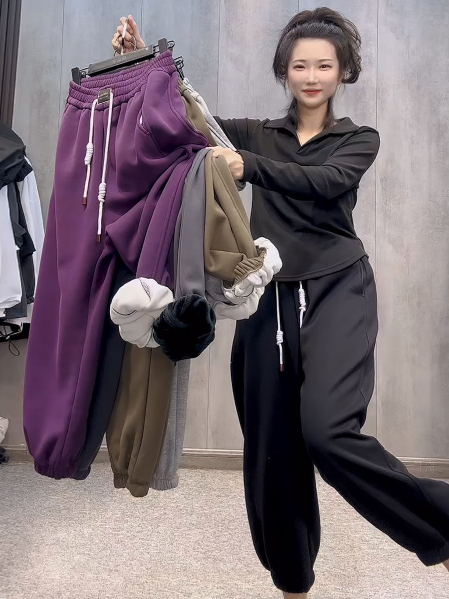 欧货2023秋冬新款加绒休闲裤宽松哈伦裤百搭高腰抽绳加厚束脚卫裤