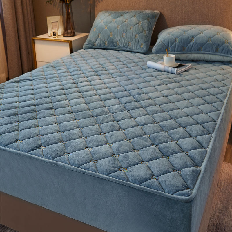 水晶绒床笠单件加厚牛奶珊瑚绒夹棉床罩冬季保暖床垫套防滑三件套
