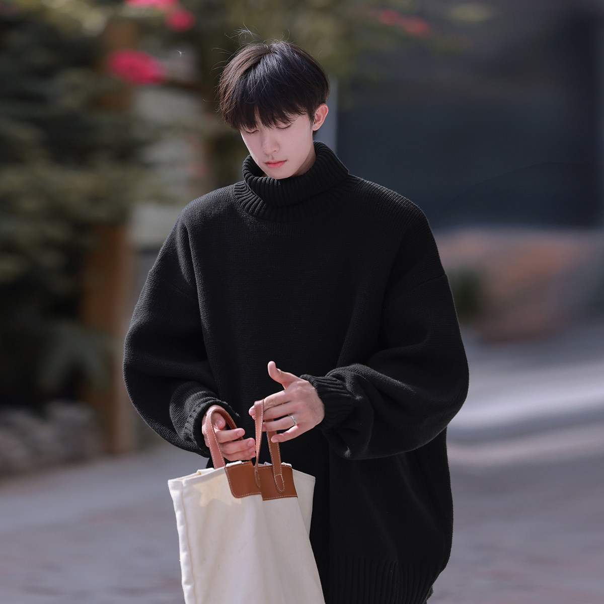 冬季高领毛衣男韩版潮流纯色百搭宽松情侣休闲加厚保暖针织衫上衣