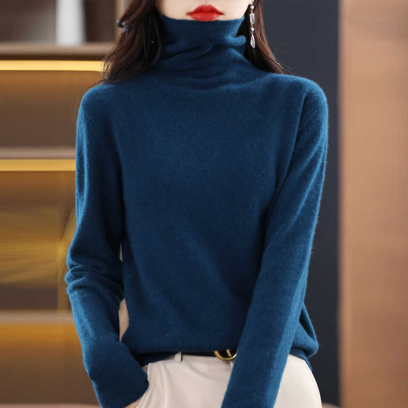 XZ高领毛衣女羊毛打底针织衫2023年秋冬新款修身堆堆领内搭套头