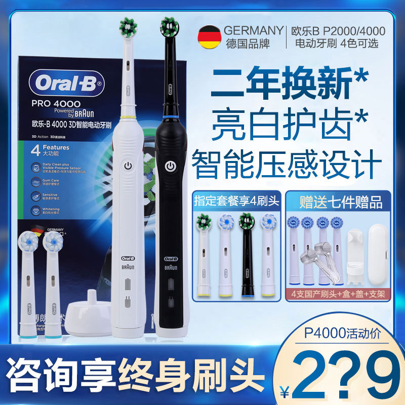 博朗欧乐比b/oralb电动牙刷P2000/4000成人声波旋转式3D成人P3000