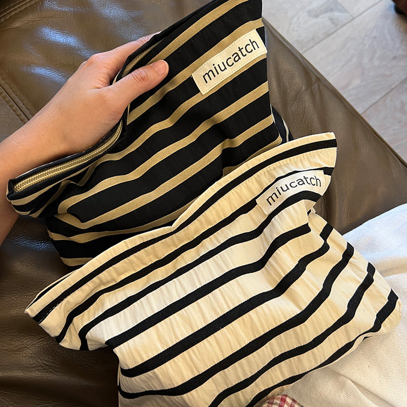 美摘条纹黑金帆布水乳护肤用品收纳包简约气质化妆包便携日系ins