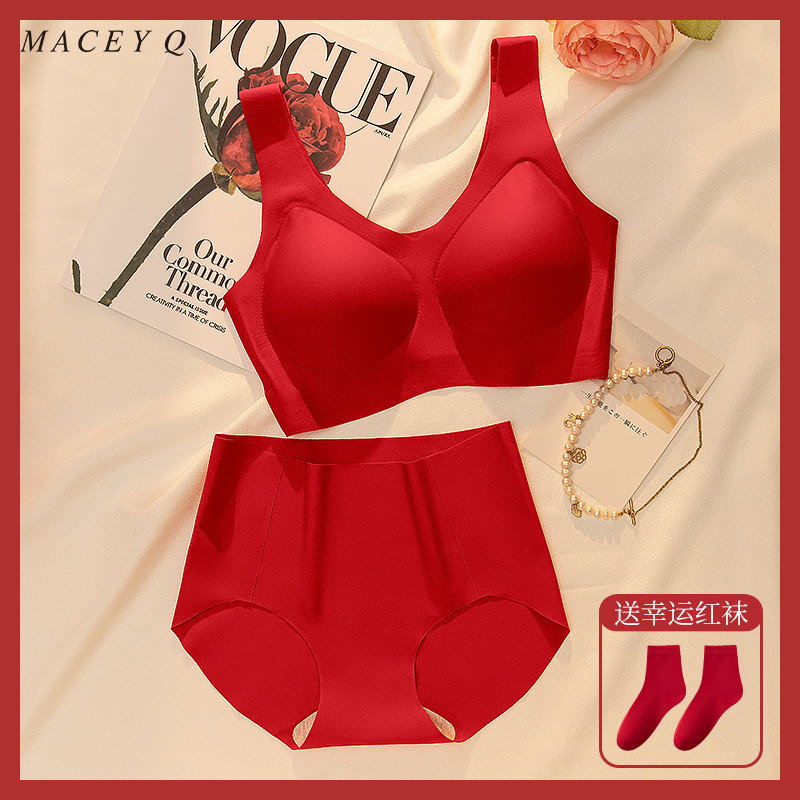 红色结婚新娘本命年内衣套装女薄款大胸显小无钢圈无痕文胸背心式