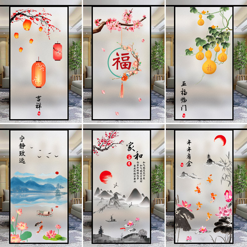 中国风窗纸磨砂玻璃贴纸防走光窗户贴膜浴室门卫生间防窥厕所隐私