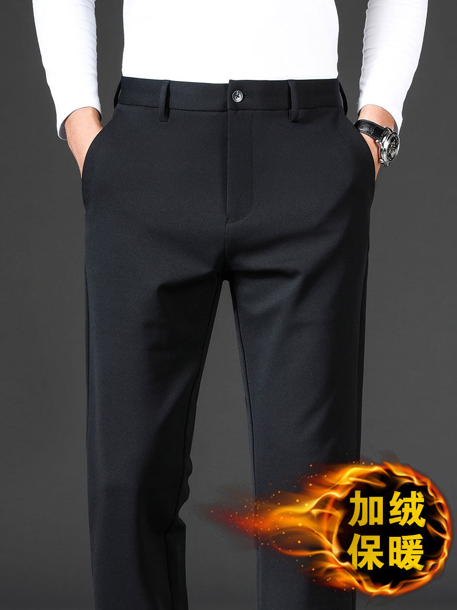 高端锦纶 秋冬款加绒加厚男士休闲裤直筒宽松冬季西裤男商务裤子