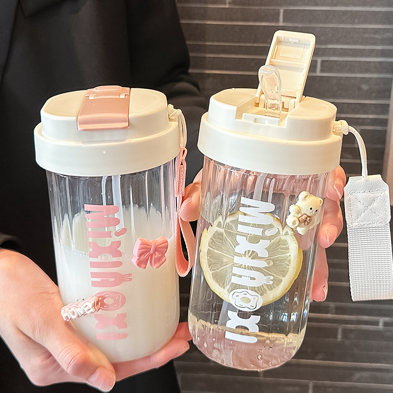 高颜值大容量吸管水杯便携双饮玻璃杯男女生办公室咖啡杯牛奶杯子