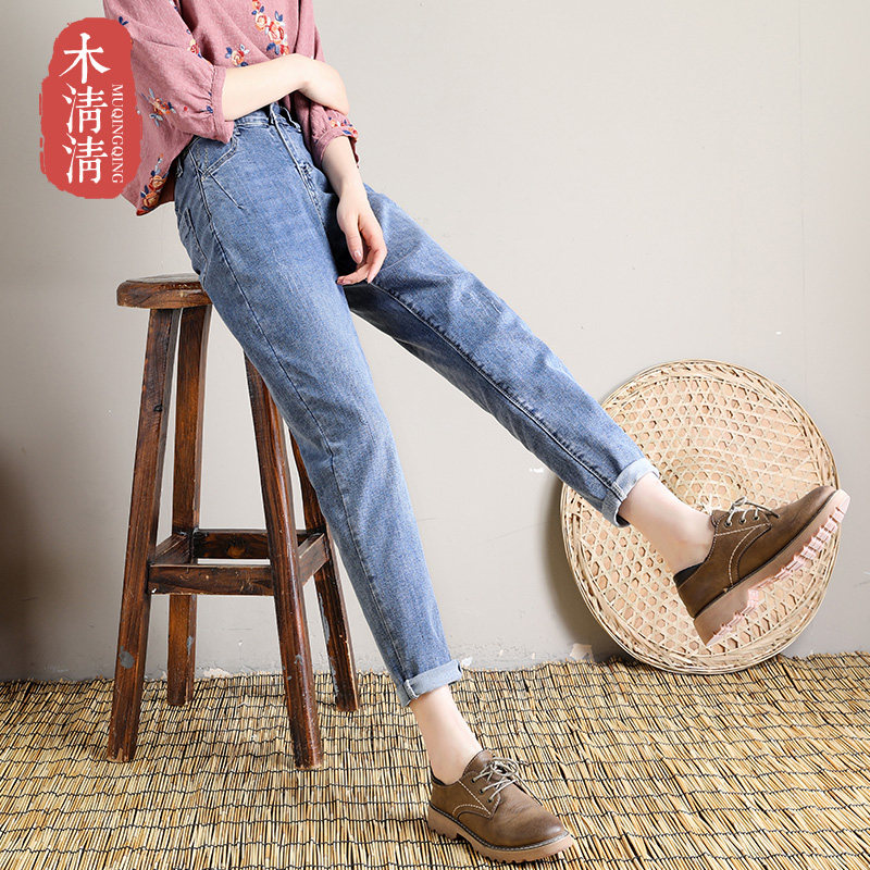 超级薄软夏季款mini brand九分牛仔裤女高腰显瘦宽松哈伦裤萝卜裤