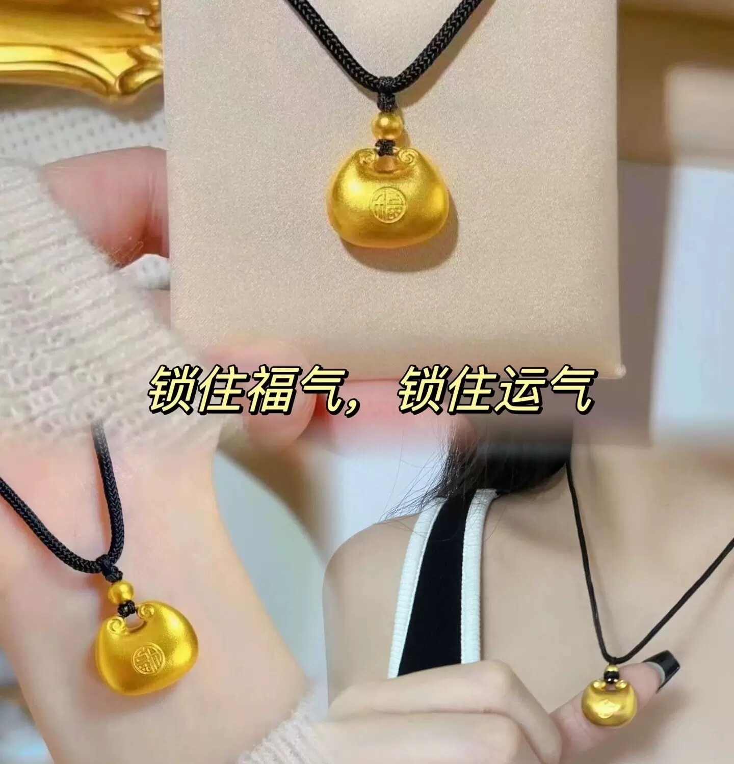 yla2024新款本命龙年首饰黄金色小胖福吊坠编织黑绳颈链送女友