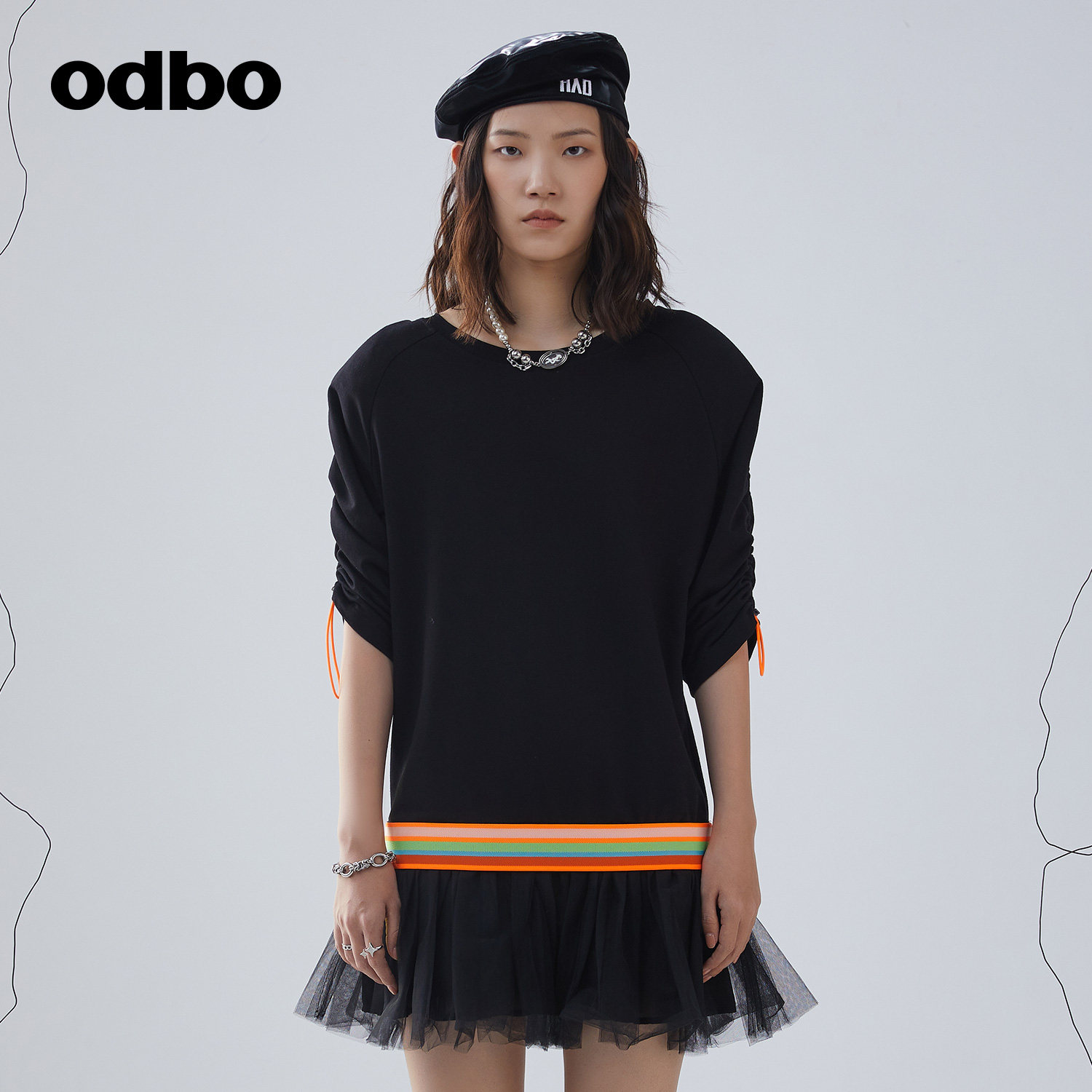 odbo欧宝原创设计拼接套头裙子2022年夏季新款撞色假两件连衣裙潮
