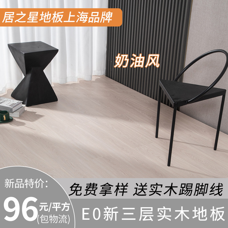 上海新三层多层实木复合木地板家用防水耐磨环保E0奶油原木风灰色
