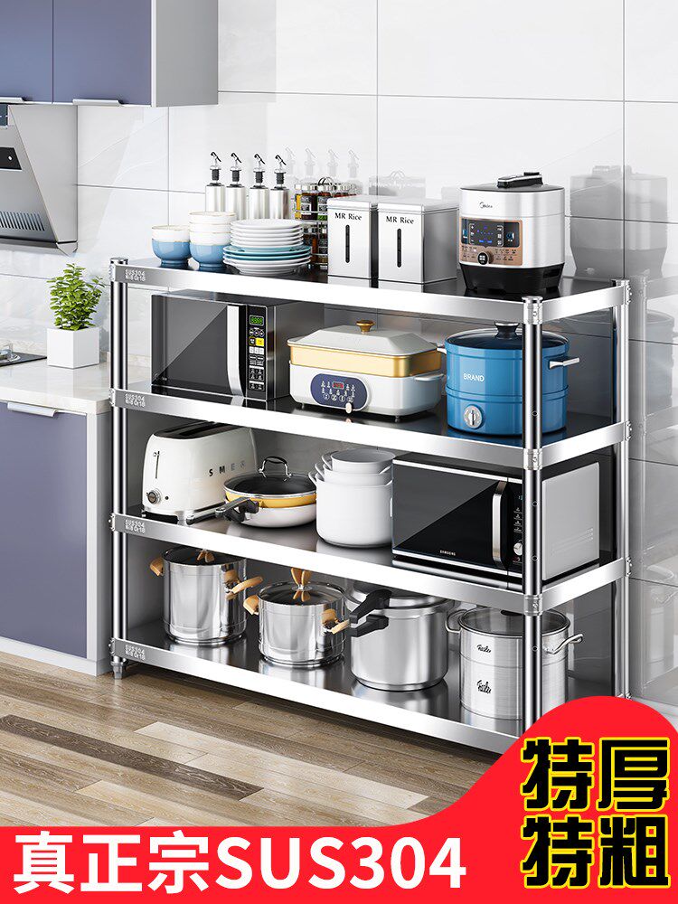 304不锈钢厨房置物架落地多层多功能微波炉收纳架锅架橱柜储物架