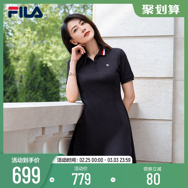 【高圆圆同款】FILA 斐乐女子短袖连衣裙夏季休闲运动翻领POLO裙