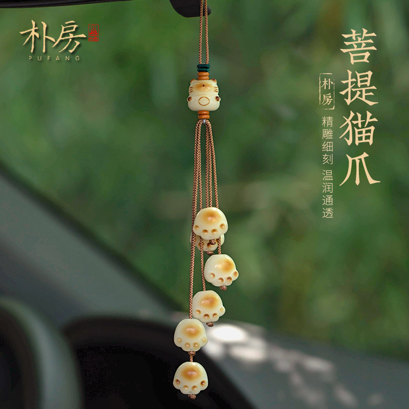 炭烧猫爪饰品装饰摆件汽车挂件车内吊饰车载后视镜内饰挂饰菩提女