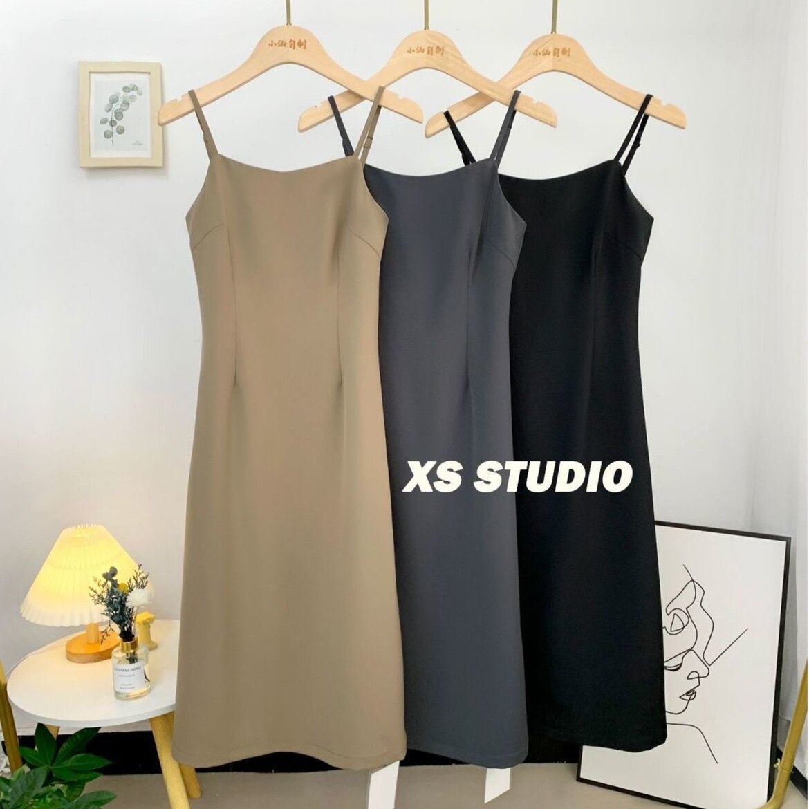 法式复古连衣裙女夏季新款显瘦气质收腰中长款开叉西装打底吊带裙