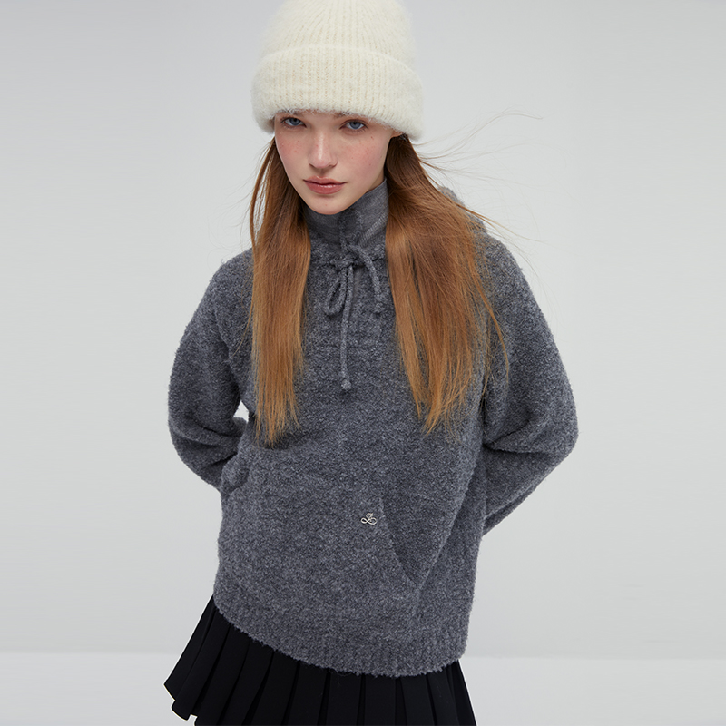 AHHH v领连帽针织外套女秋冬新款慵懒复古高级打底内搭毛衣