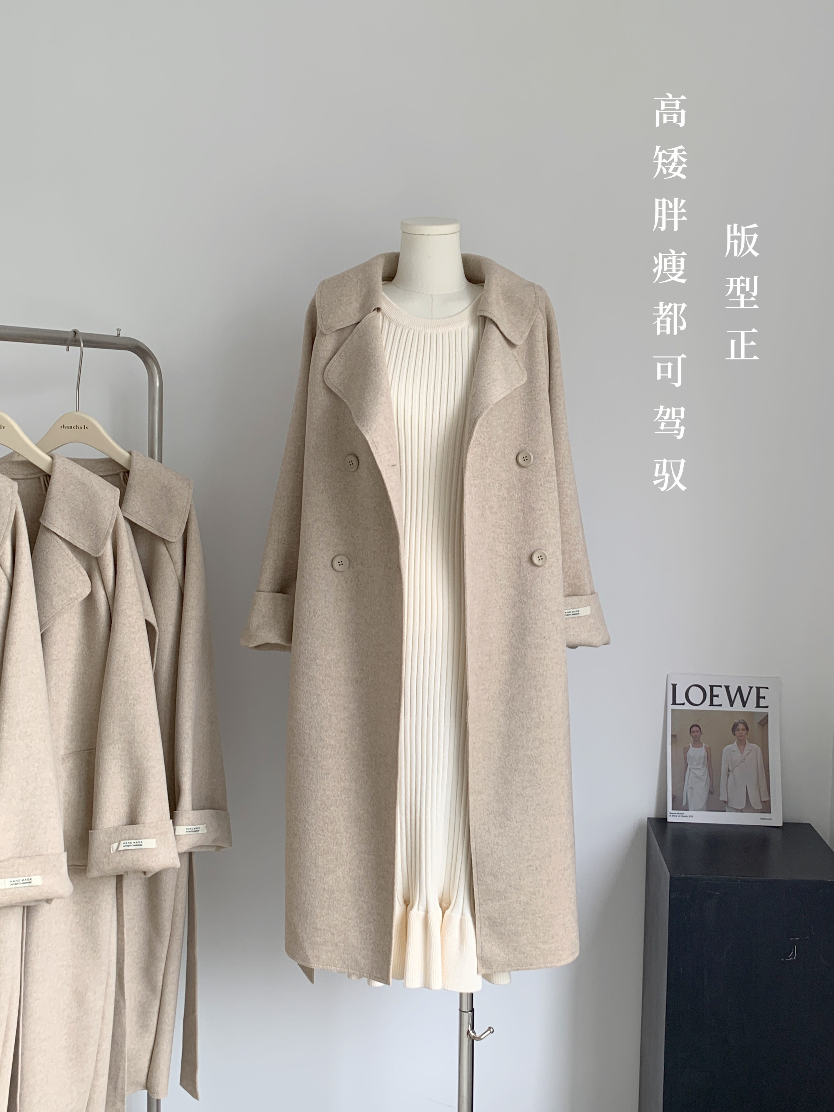 RENA气质英伦风双面呢羊毛呢高级感小个子宽松长款毛呢大衣外套