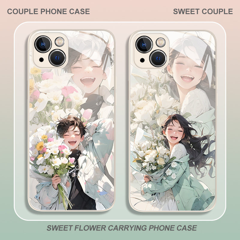 鲜花情侣适用苹果14手机壳15/iphone13pro卡通12mini日系11动漫xs新款max小清新8plus高级感x男女xr一对7防摔