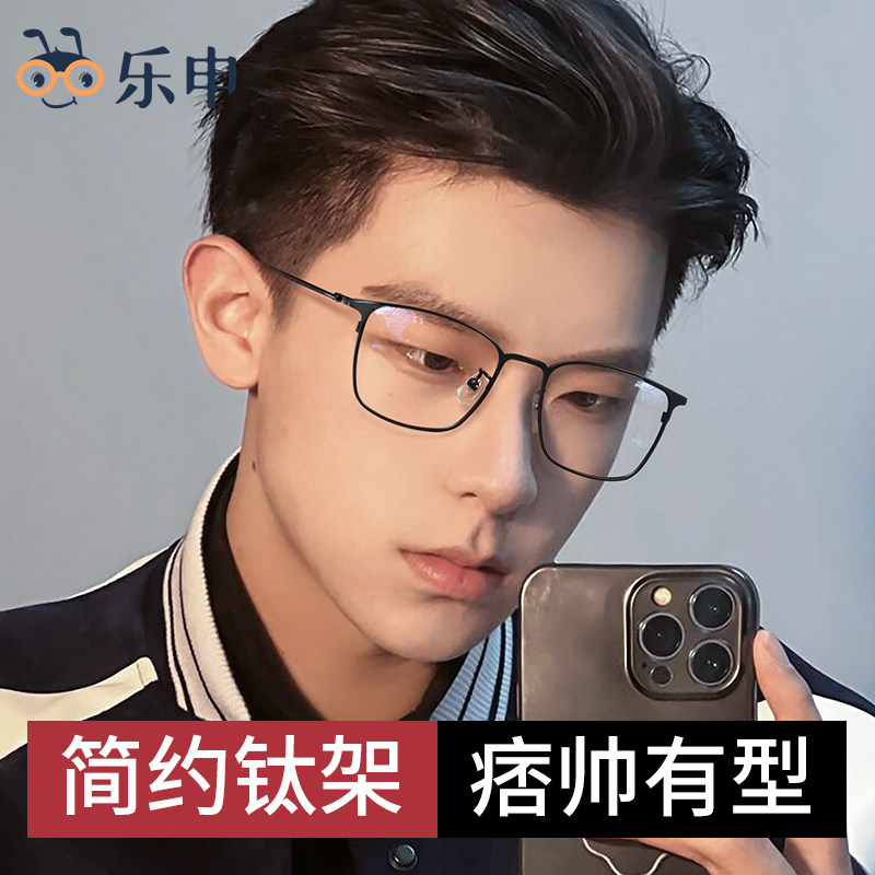 近视眼镜框男潮痞帅方框可配度数纯钛黑框防蓝光大脸配平光眼睛女