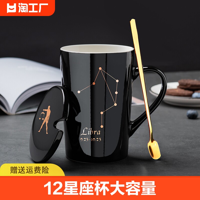陶瓷个性杯子创意马克杯带盖勺情侣喝水杯男生办公室大容量咖啡杯