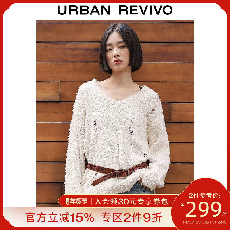 UR2023秋冬新款女装时尚慵懒风设计感破洞针织衫UWL930062