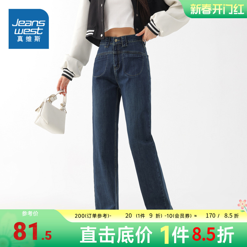 KF真维斯女士直筒裤春季2023新款学生弹力高腰水洗牛仔裤女生长裤