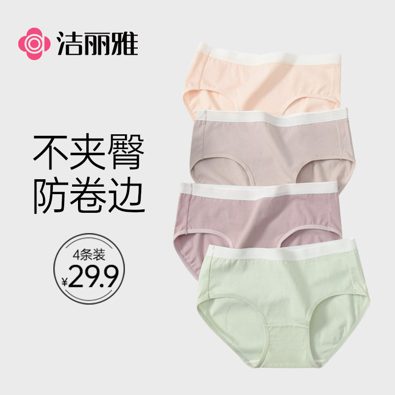洁丽雅中腰纯棉女士内裤全棉内裆少女生无痕2024新款透气短裤三角