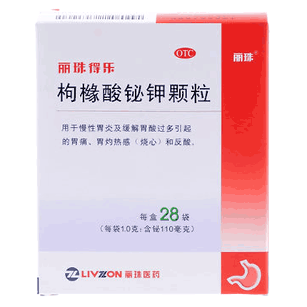 > 丽珠得乐 枸橼酸铋钾颗粒 1.1g*28袋 慢性 胃炎 胃痛 胃烧