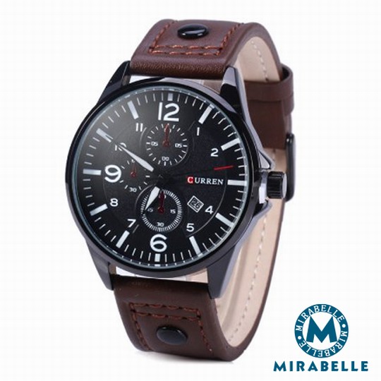 【Mirabelle】八号赛车手磨砂真皮男表/黑面