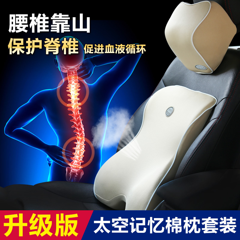 汽车腰靠腰枕记忆棉腰垫靠背护腰部支撑靠垫车用车载座椅头枕套装