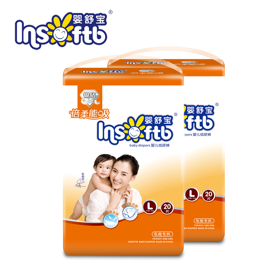 婴舒宝 银钻倍柔能吸婴儿纸尿裤L20片*2 宝宝婴幼儿尿不湿L40片