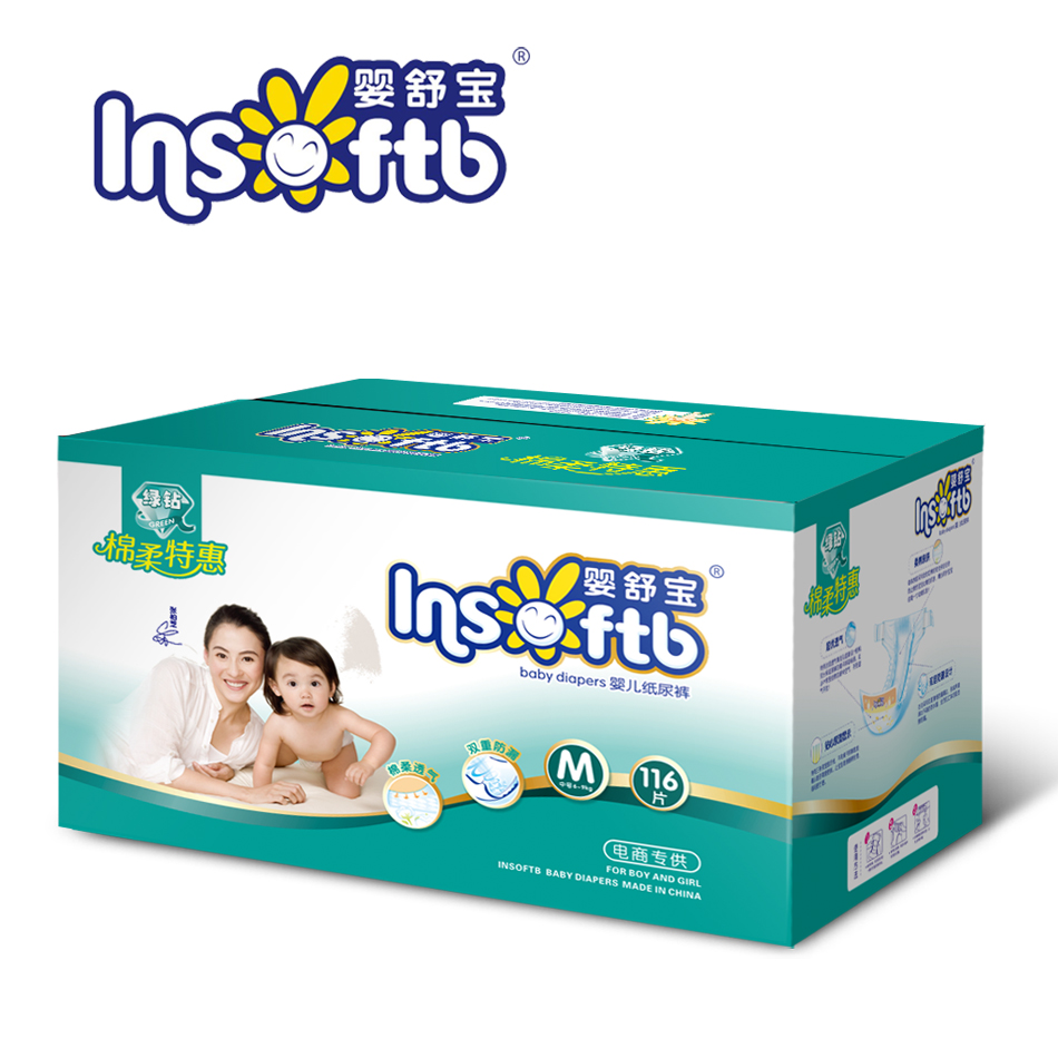 婴舒宝 绿钻棉柔特惠婴儿纸尿裤M116片 宝宝婴幼儿中码纸尿裤