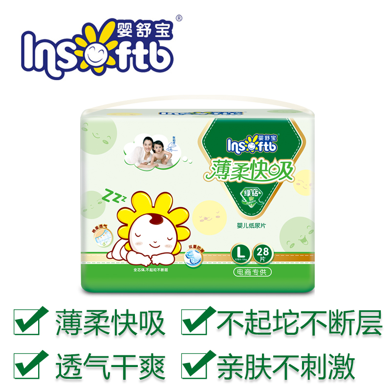 婴舒宝 绿钻薄柔快吸婴儿纸尿片L号28片 宝宝幼儿大码尿不湿