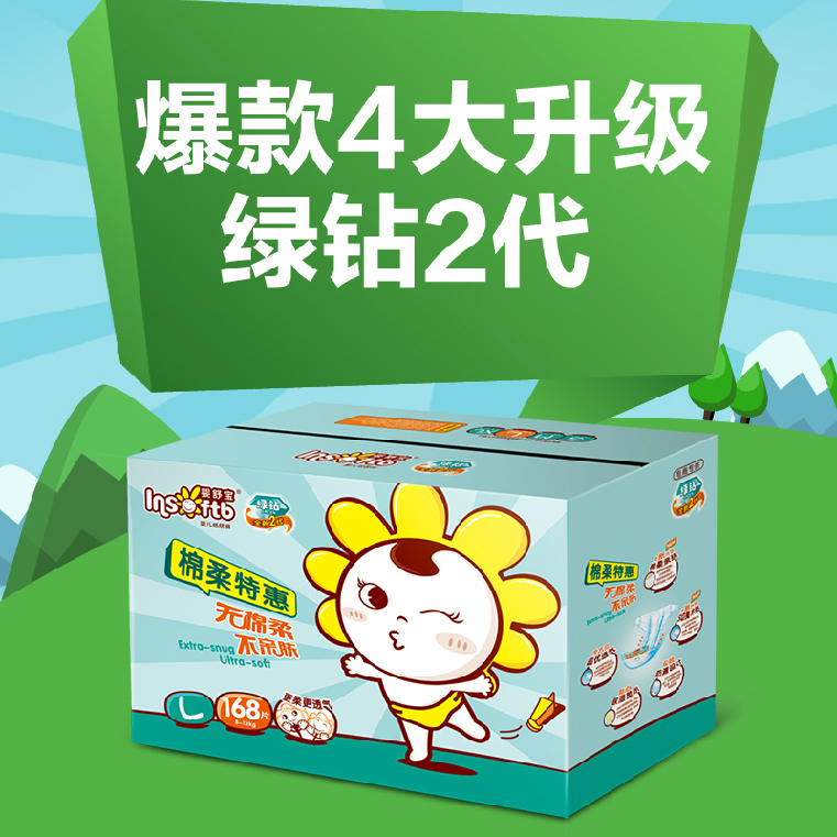 婴舒宝 绿钻2代棉柔特惠婴儿纸尿裤L号168片 婴幼儿大码尿不湿