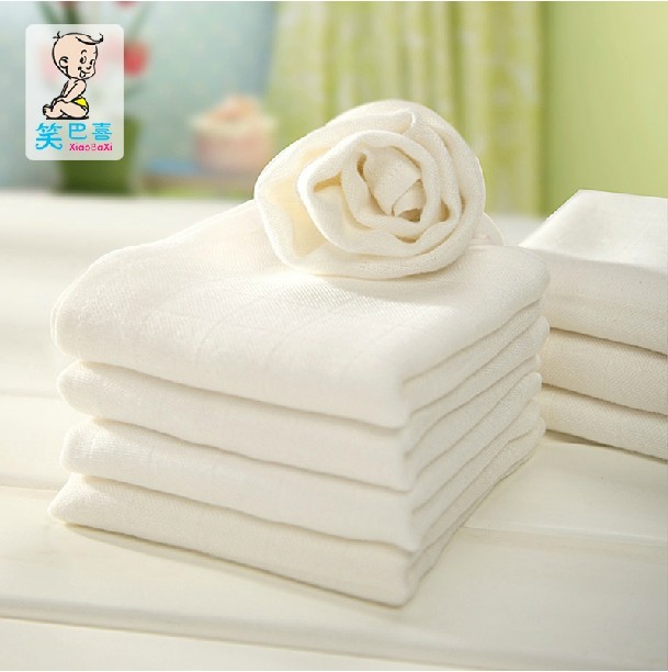 笑巴喜 新生婴儿纱布竹纤维尿布 吸水透气宝宝隔尿垫巾 4条装