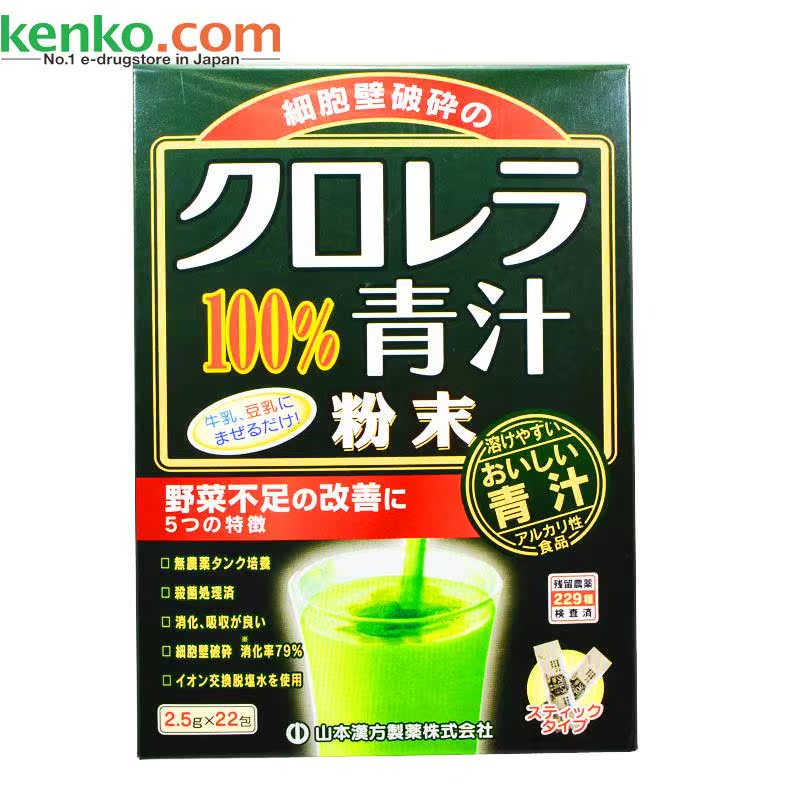 【日本直邮】山本汉方小球藻青汁天然碱性破壁细胞2.5g×22包