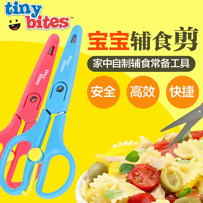 > 美国进口Tiny Bites 辅食剪婴儿食物剪婴幼儿不锈钢剪刀研磨器2把